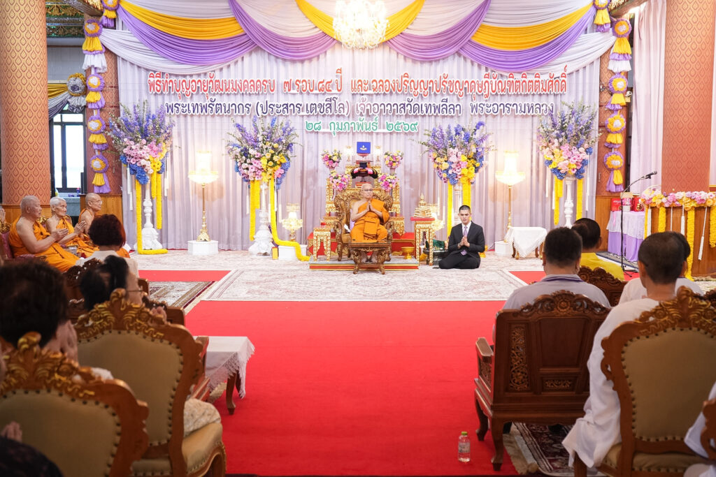 คณะสงฆ์และคณะศิษยานุศิษย์วัดเทพลีลาจัดพิธีฉลองอายุวัฒนมงคล 84 ปี พระเดชพระคุณพระทพรัตนากร เจ้าอาวาสวัดเทพลีลา ที่ปรึกษาเจ้าคณะกรุงเทพมหานคร